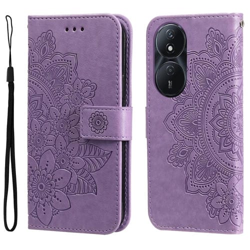 Funda para Honor Play 50 Plus de Cuero con Estampado de Flores de 7 Pétalos (Púrpura Claro)