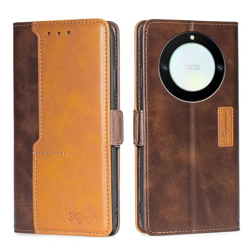 Caja de Teléfono de Cuero para Honor X40 con Hebilla Lateral y Color de Contraste (Marrón Oscuro + Dorado)