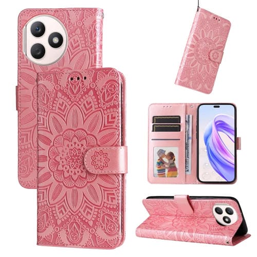 Funda de Cuero para Honor X50I con Girasol en Relieve (Oro Rosa)