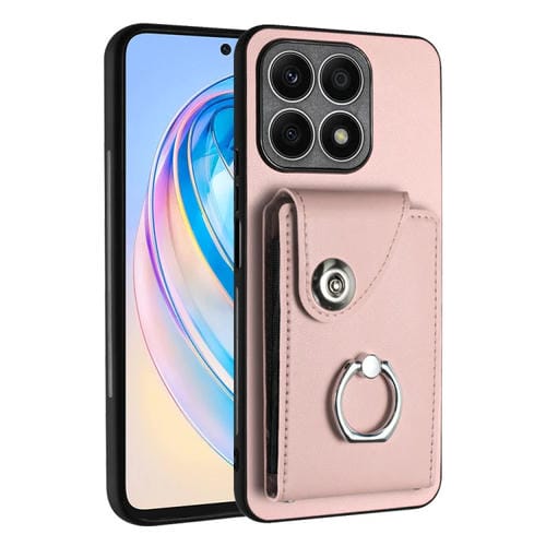 Funda para Honor X8A de PU con Soporte para Anillo y Bolsa para Tarjeta (Rosa)