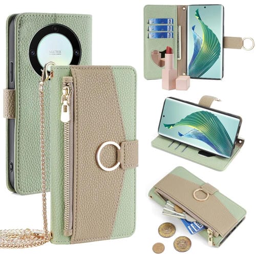 Funda Cruzada de Cuero para Honor X9A 5G con Textura Litchi (Verde)