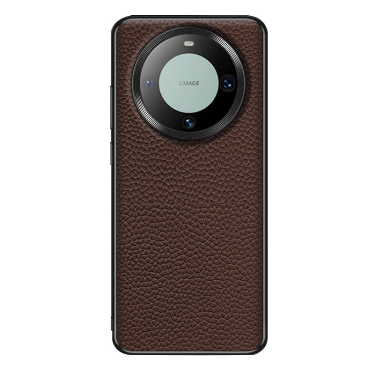 Funda para Huawei Mate 60 Pro de Cuero Genuino con Textura Litchi (Café)