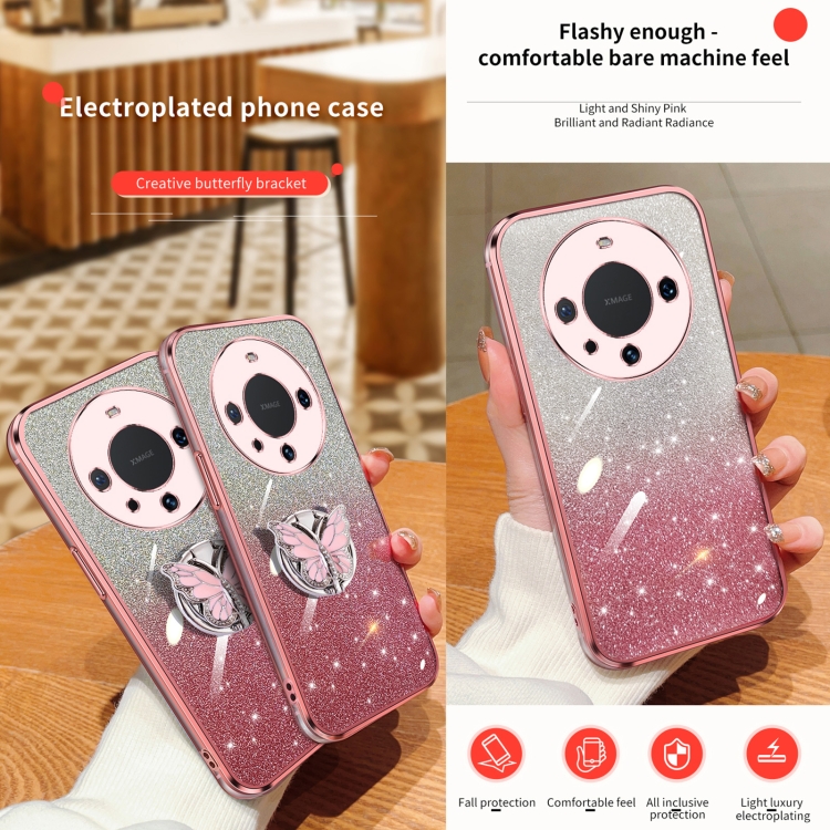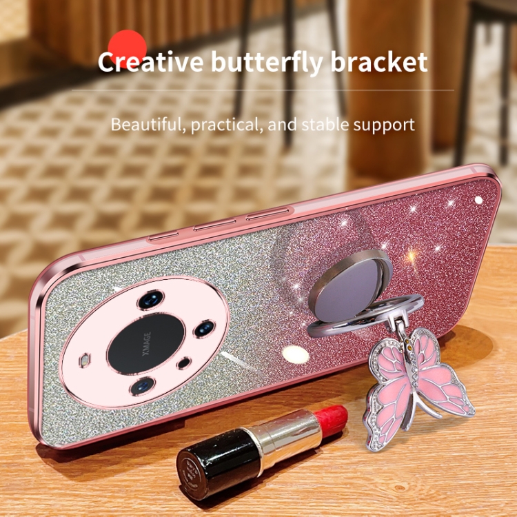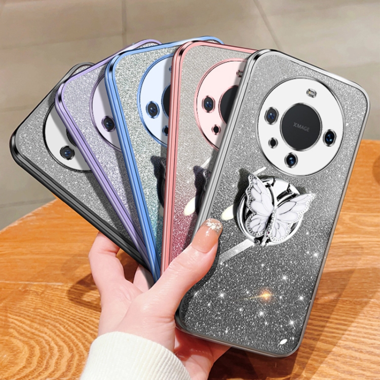 - 1x Funda TPU para Huawei Mate 60 Pro con Soporte de mariposa y brillo degradado (Azul Sierra)