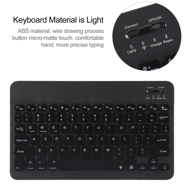• Teclado desmontable con adsorción magnética; retroiluminación RGB; Soporte giratorio multiángulo; Conexión Bluetooth con alcance de hasta 10 metros; vida útil de las teclas estimada en 5 millones de pulsaciones; duración de Batería de hasta 100 horas en uso; Batería de litio con vida útil aproximada de 3 años; Corriente de 500 mA.