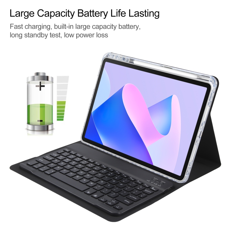 • 1x Teclado Bluetooth Huawei MatePad 11 (2023/2021) con Botón Cuadrado, Retroiluminación, Soporte Giratorio y Funda de Cuero (Negro)