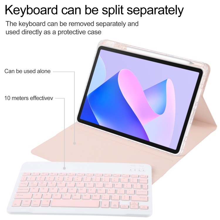 - 1x Teclado Bluetooth Huawei MatePad 11 (2023/2021) con Botón cuadrado, retroiluminación, Soporte giratorio y funda de cuero en Oro Rosa