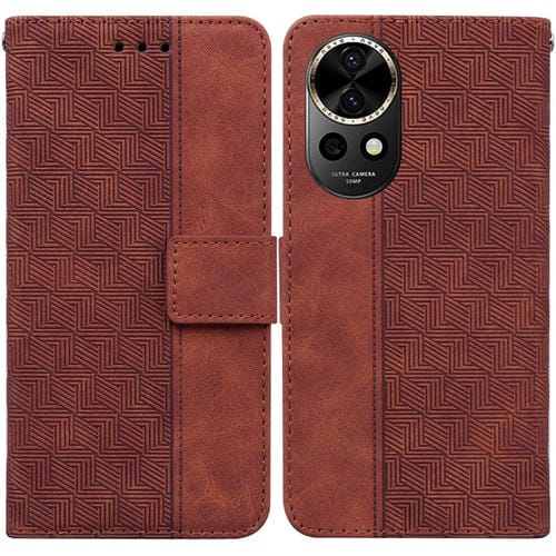 Funda de Cuero para Huawei Nova 12 con Relieve Geométrico (Marrón)