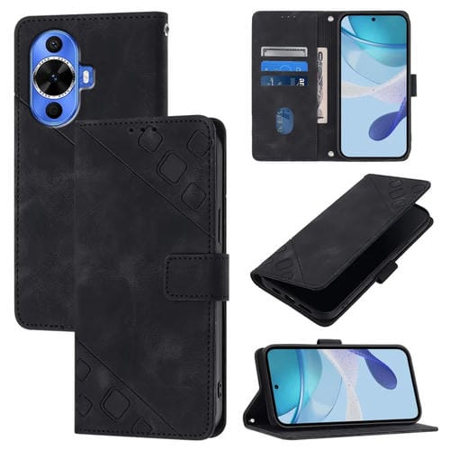 Funda de Cuero para Huawei Nova 12S con Relieve Global Skin Feel (Negro)
