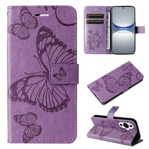 - 1x Funda de Cuero con Tapa para Huawei Nova 12S con Patrón Mariposa 3D (Púrpura)