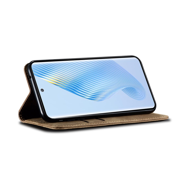 Funda de Cuero con Textura de Mezclilla para Huawei P60/P60 Pro (Caqui)