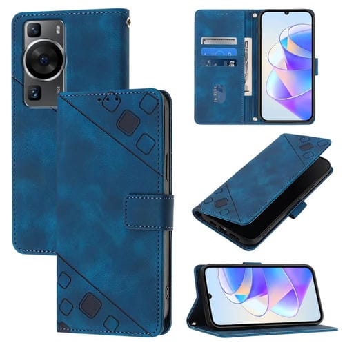 - 1x Funda de Cuero Skin Feel para Huawei P60 y P60 Pro en Relieve (Azul)