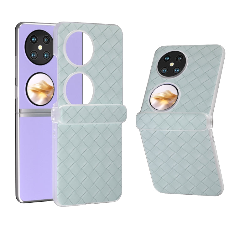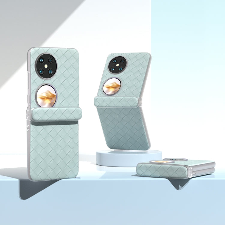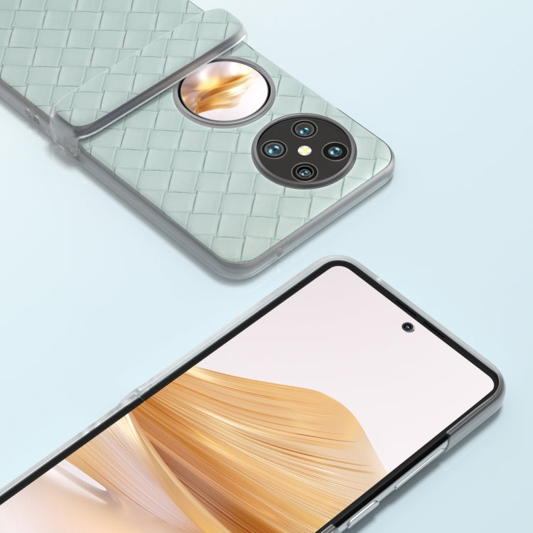 Funda 3 en 1 para Huawei Pocket 2 de PU con Marco Translúcido Esmerilado y Textura Tejida (Verde Claro)