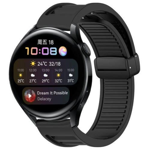 Correa de silicona para Huawei Watch 3 con hebilla magnética plegable de 22mm (Negro)