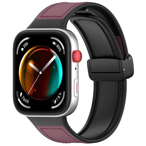 Correa de Reloj para Huawei Watch Fit 3 de Cuero y Silicona con Hebilla Plegable (Rojo Vino)