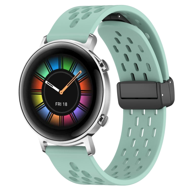 Correa de Reloj Silicona para Huawei Watch GT2 42mm 20mm con Cierre Magnético Plegable (Verde Azulado)