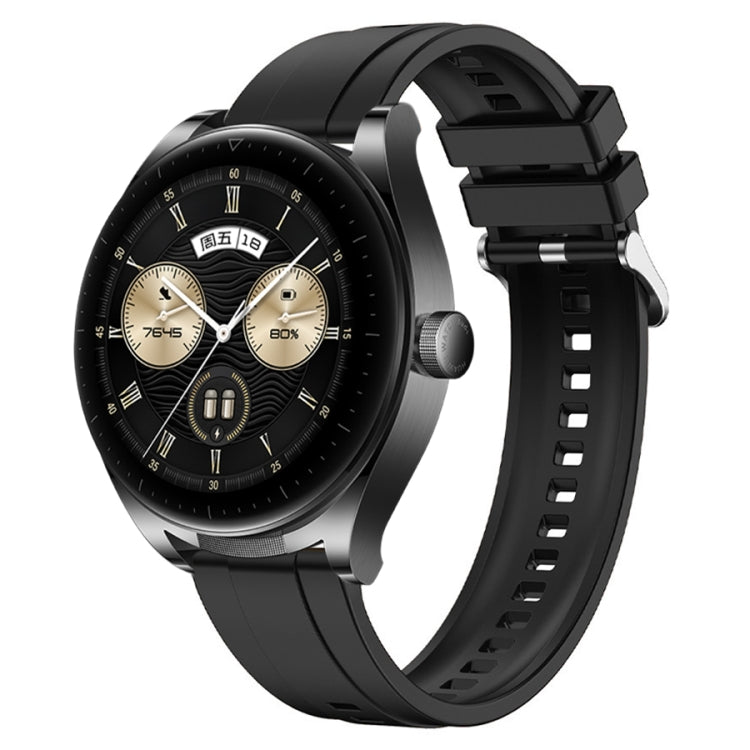 Correa de Silicona para Huawei Watch GT3 SE y Watch Buds con Patrón de Neumático y Hebilla Plateada (Negro)