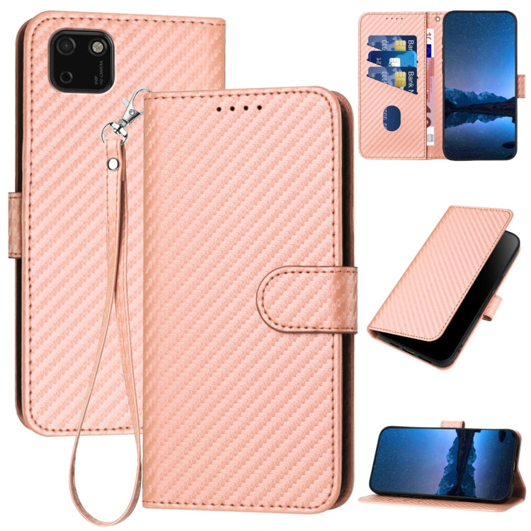 Funda de Cuero para Huawei Y5P Yx0070 con Hebilla de Fibra de Carbono y Cordón (Rosa)