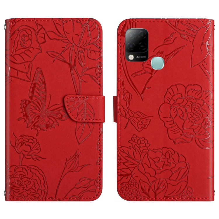Funda de Cuero Infinix Hot 10S/10T Ht03 Skin Feel Butterfly con Tapa en Relieve (Rojo)