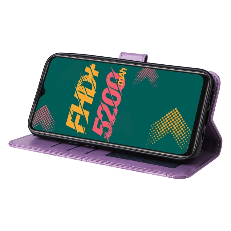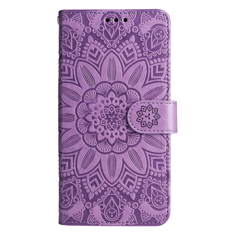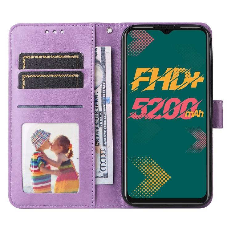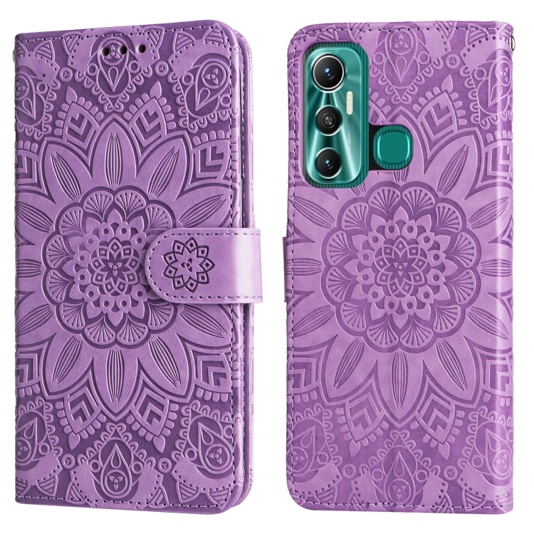Estuche para Teléfono Infinix Hot 11 Cuero con Estampado de Girasol en Relieve (Púrpura)