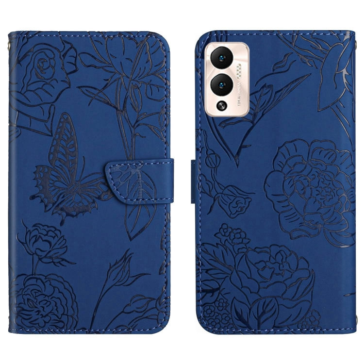 Funda de Cuero con Tapa en Relieve Skin Feel Butterfly para Infinix Hot 12 Play HT03 (Azul)