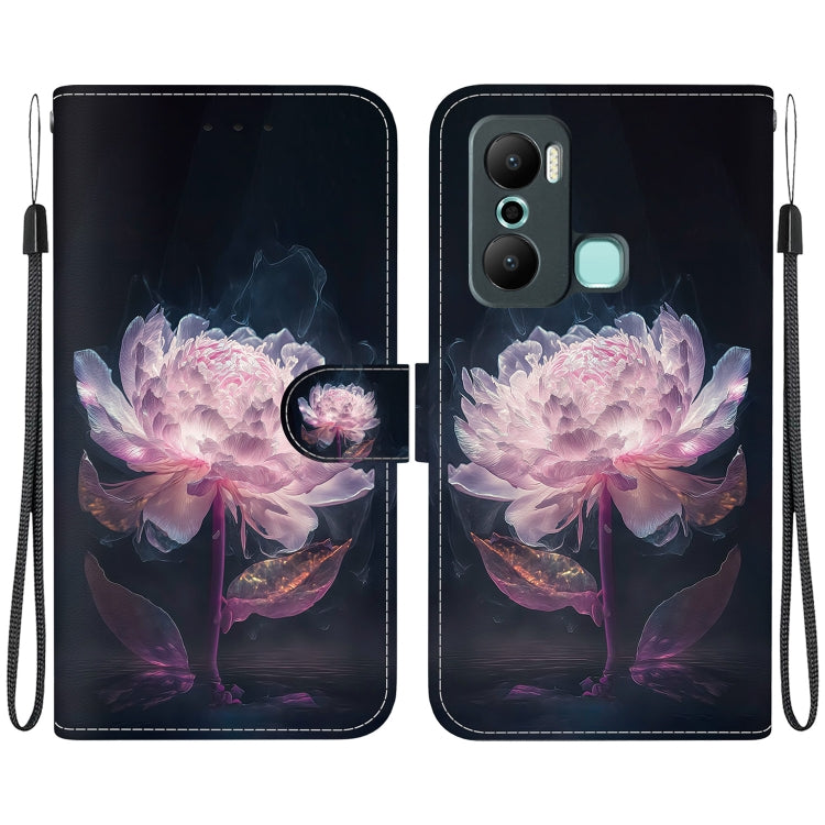 Estuche de Cuero para Infinix Hot 20 Play con Dibujo Coloreado y Textura de Cristal (Peonía Púrpura)
