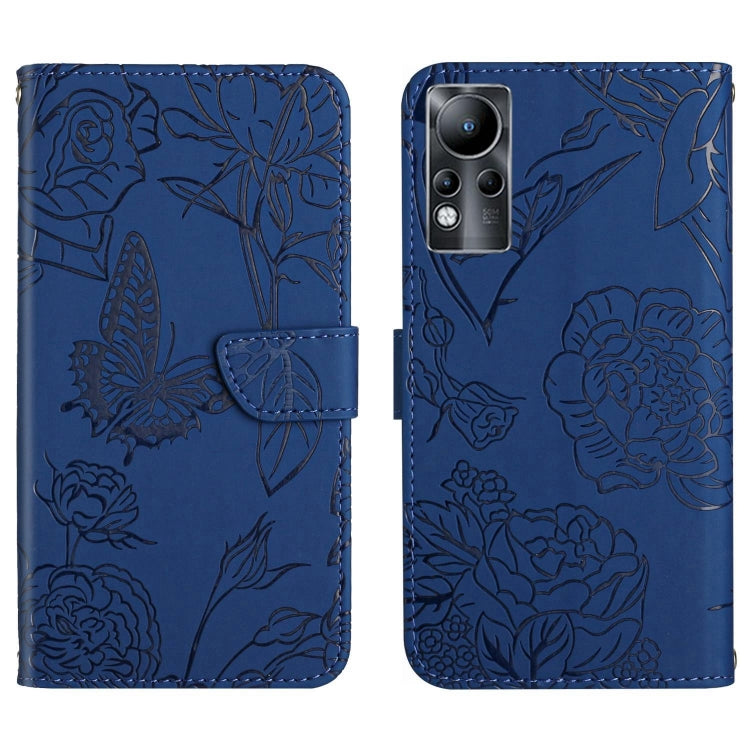 Funda de Cuero para Infinix Note 11 HT03 Skin Feel Butterfly con Tapa en Relieve (Azul)