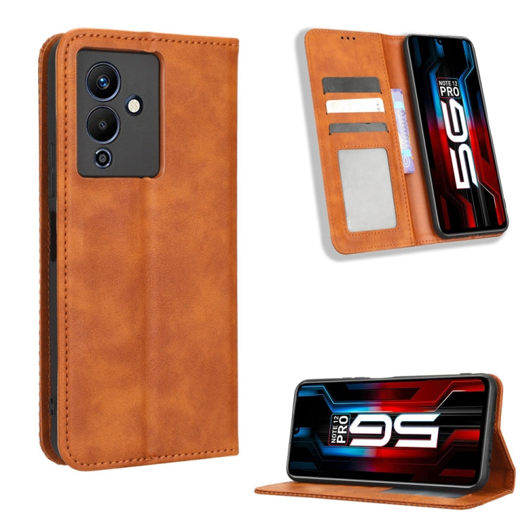 Funda de Cuero con Hebilla Magnética para Infinix Note 12 5G y Note 12 Pro 5G (Marrón)