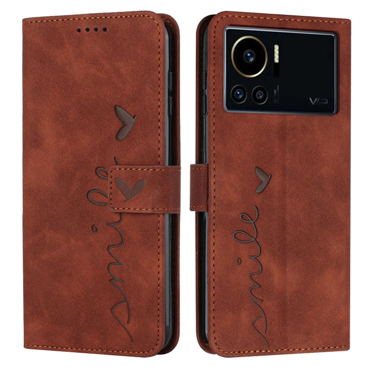Funda de Cuero para Infinix Note 12 Vip Skin Feel Heart Pattern (Marrón)