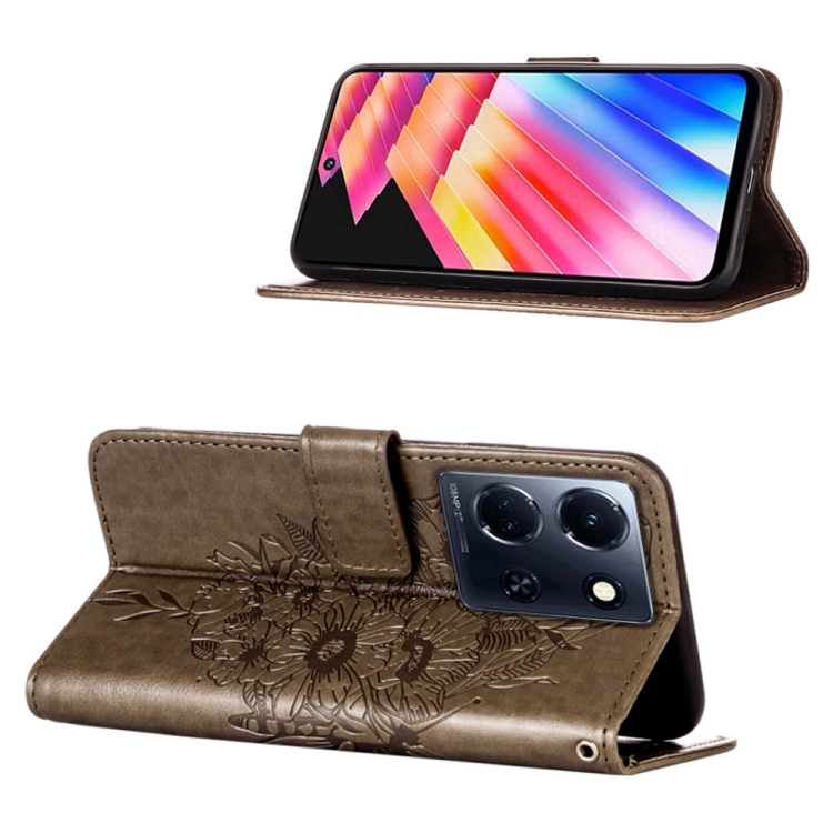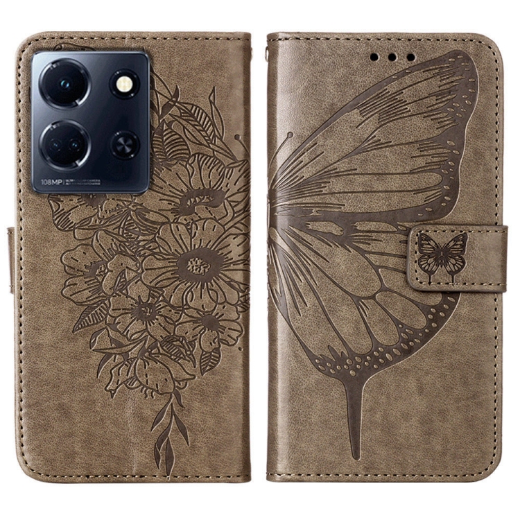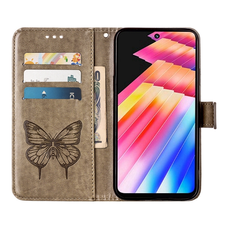 Estuche para Teléfono Infinix Note 30 5G X6711 Cuero con Mariposa en Relieve (Gris)