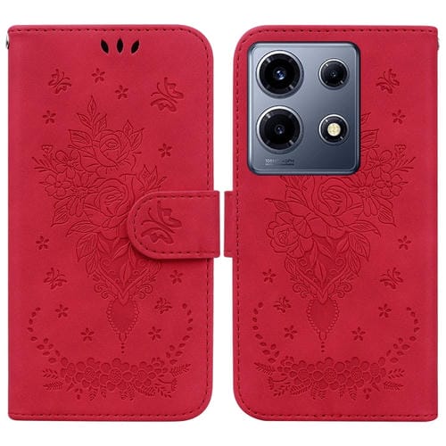 Funda de Cuero para Infinix Note 30 Vip con Relieve Butterfly Rose (Rojo)