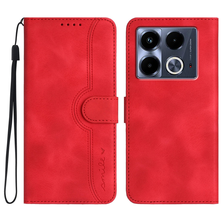 Funda de Cuero para Infinix Note 40 4G con Sensación de Piel y Patrón de Corazón (Rojo)