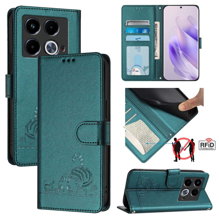Estuche para Infinix Note 40 5G de Cuero RFID con Patrón en Relieve y Cordón (Verde Pavo Real)