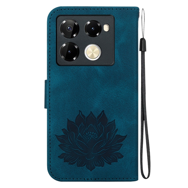 Funda de Cuero con Relieve de Loto para Infinix Note 40 Pro (Azul Oscuro)