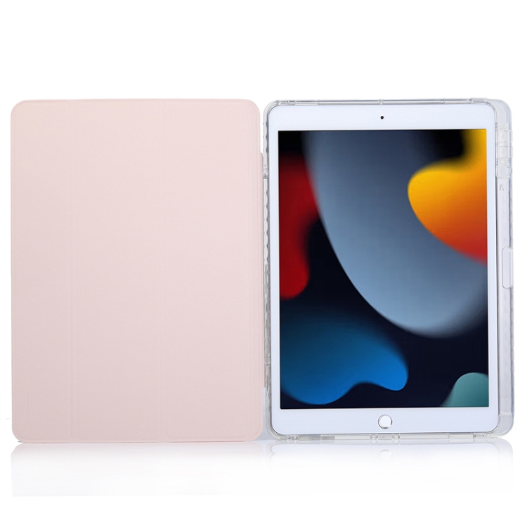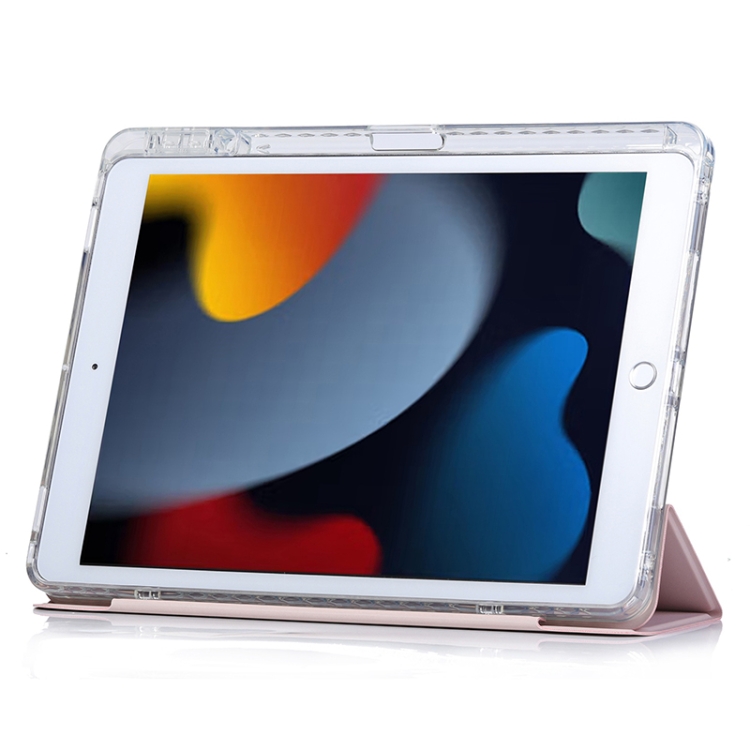 Estuche Tableta Inteligente Cuero Apple iPad 10.2 (2021 2020) 10.5 Hebilla Bloqueo 3 Pliegues (Rosa)