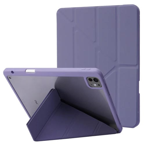 Pour iPad Pro 11 2024 Étui en cuir acrylique transparent pour tablette (gris lavande)