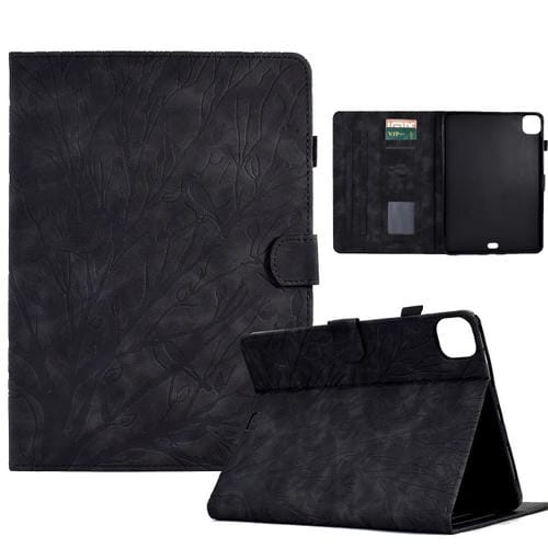 Pour iPad Pro 11 2024 Étui pour tablette intelligente en cuir gaufré Fortune Tree (noir)