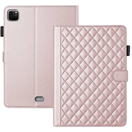 Funda para Tableta iPad Pro 12.9 Cuero Rhombus Lattice Función Protectora (2022/2021/2020) (Oro Rosa)