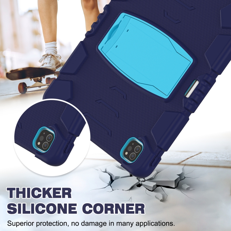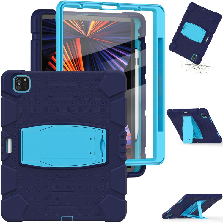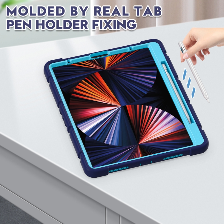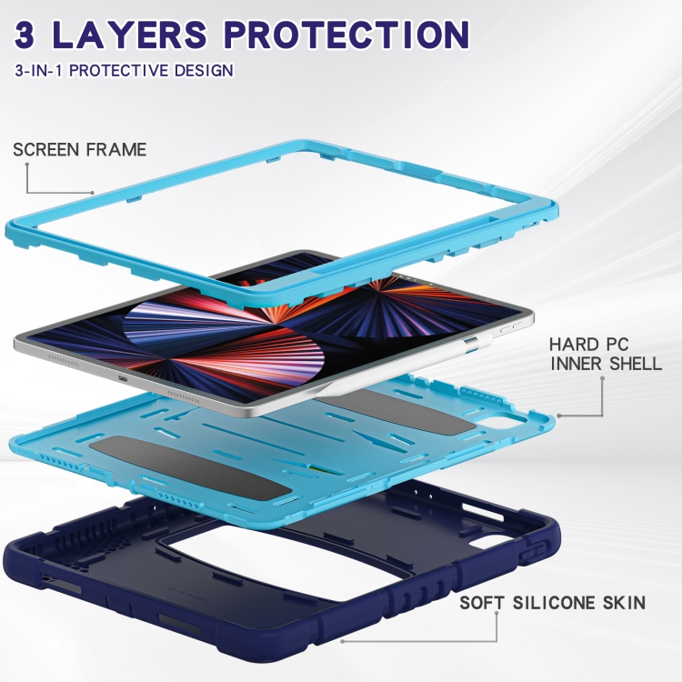 Marco de Pantalla de Protección para iPad Pro 12.9 (2022/2021) 3 Capas PC Silicona Azul Marino + Azul