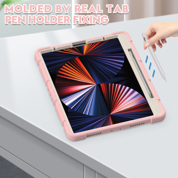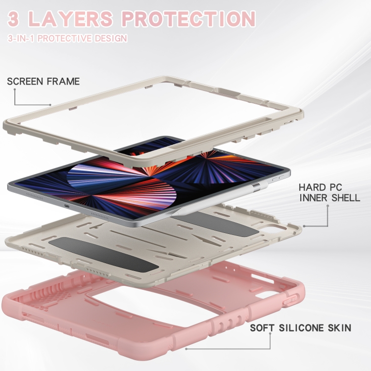 Marco de Pantalla de Protección para iPad Pro 12.9 (2022/2021) 3 Capas PC Silicona Rosa de Flores de Cerezo
