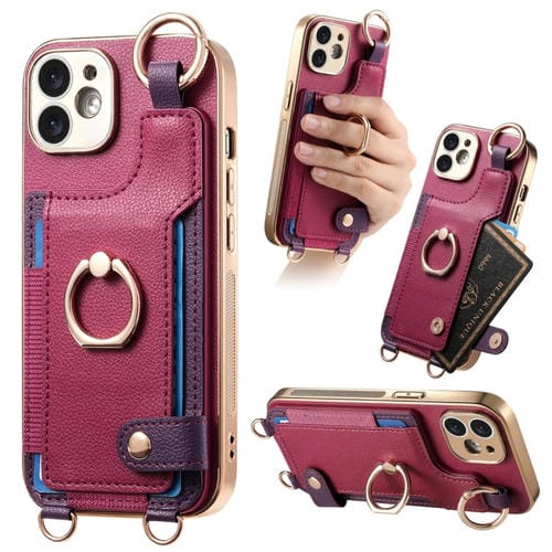 Estuche para Teléfono iPhone 11 con Bolsa para Tarjeta Anillo y Lazo para Colgar (Púrpura)