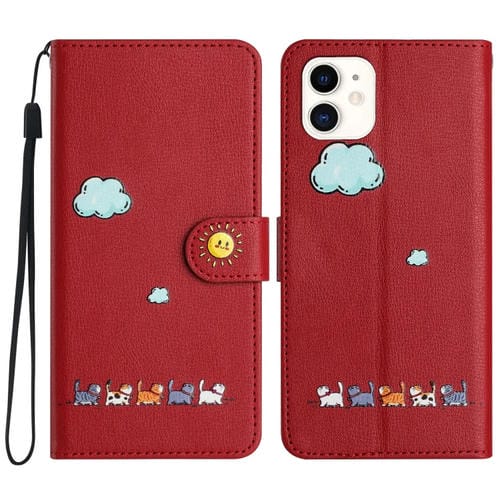 Funda de Cuero para Teléfono iPhone 11 con Gatos de Dibujos Animados (Rojo)