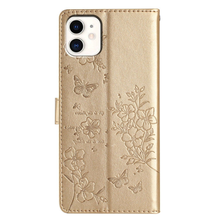 Funda para Teléfono iPhone 11 Cuero con Relieve Flor de Amor y Mariposa (Dorado)