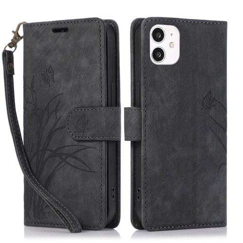 Funda para Teléfono iPhone 11 Cuero Relieve Mariposa Orquídea (Negro)