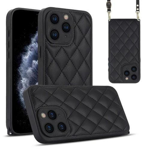 Estuche para Teléfono iPhone 11 Pro Textura Rómbica Cordón Doble (Negro)