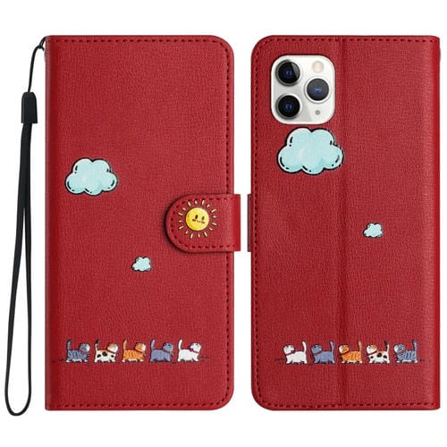 Pour iPhone 11 Pro Étui de téléphone en cuir de chats de dessin animé (rouge)
