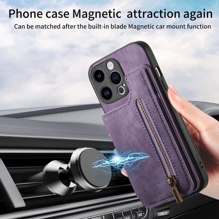 Funda para iPhone 11 Pro Cuero Retro con Cremallera y Billetera (Púrpura)
