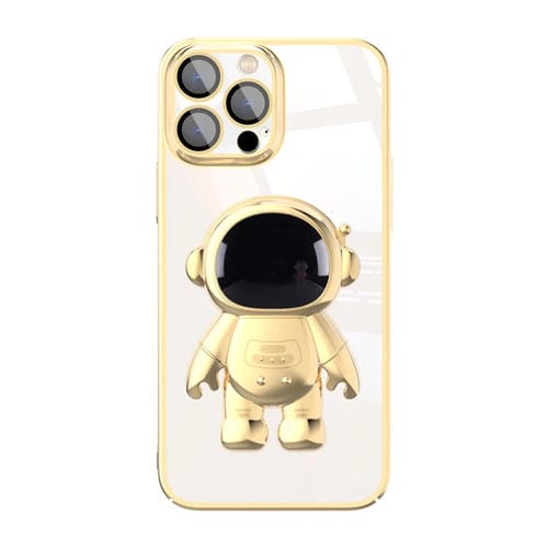 Funda para iPhone 11 Pro Galvanoplastia PC Astronaut Holder con Lente Film (Oro)