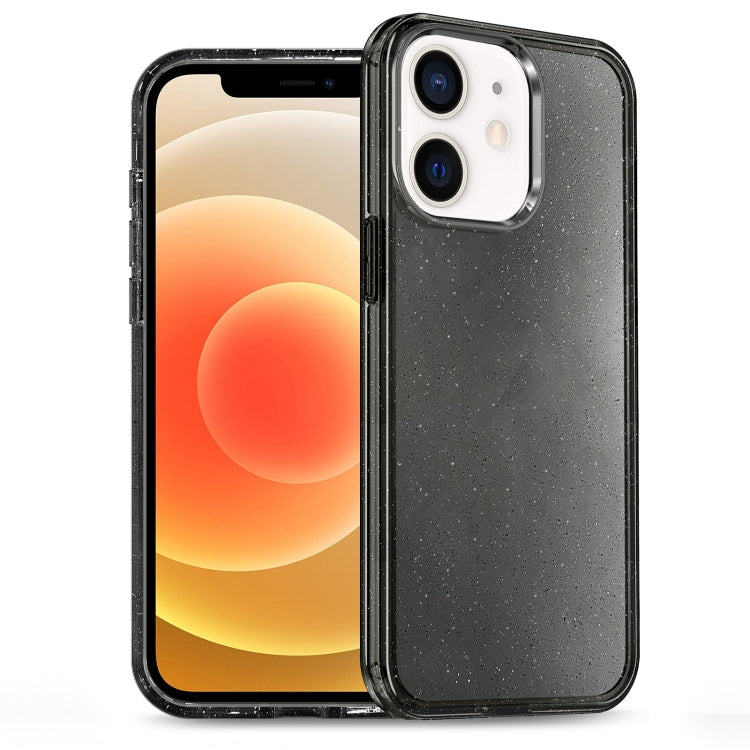 Estuche híbrido para iPhone 12 con PC Glitter Powder TPU (Negro)
