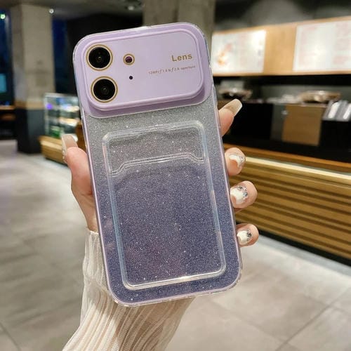 Estuche para Teléfono iPhone 12 con Brillo Degradado Ventana Grande y Ranura para Tarjeta (Púrpura Claro)