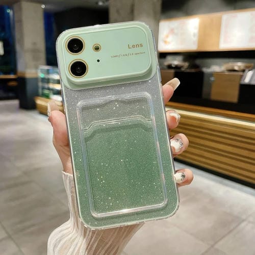 Estuche para Teléfono iPhone 12 con Brillo Degradado Ventana Grande y Ranura para Tarjeta (Verde)